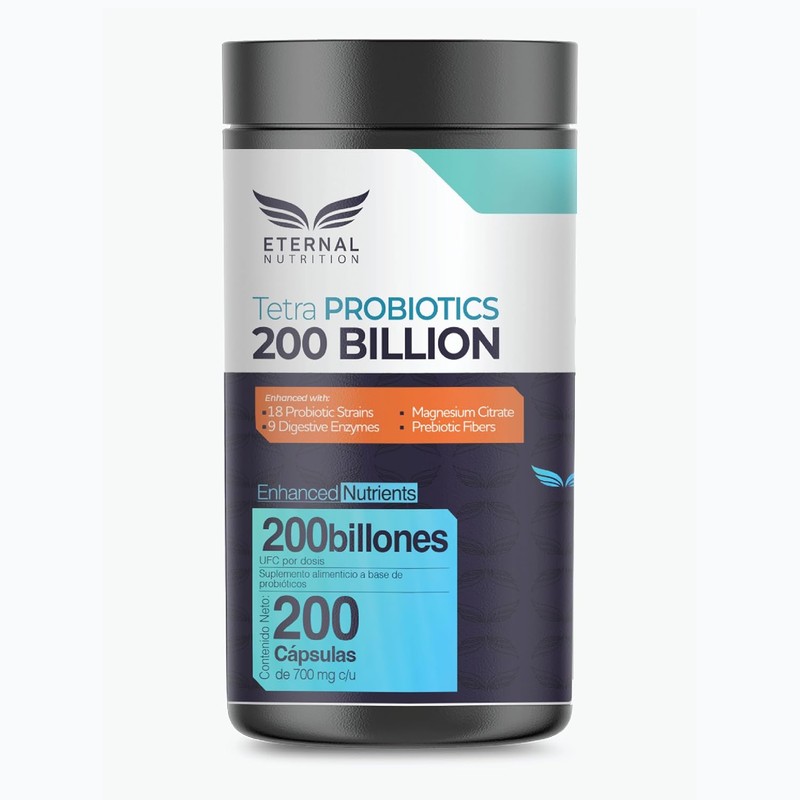 ETERNAL NUTRITION - TETRA PROBIOTICS 200 BILLONES - 200 capsulas (200 BILLONES UFC por porcion), Complejo de Probioticos con Fibras Prebioticas, Enzimas Digestivas y Citrato de Magnesio -by Eternal Nutrition. ๐ Producto más vendido con miles de clientes satisfechos. Construcción robusta y atención al detalle. โญ Miles de reseñas positivas. Ideal para quienes buscan lo mejor en calidad y estilo. Producto auténtico con satisfacción total asegurada. ¡No te quedes sin el tuyo y aprovecha esta oportunidad única!
