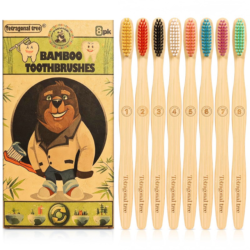 Tetragonal tree 20 Count Bamboo Toothbrushes - BPA Free Soft Bristles Natural Toothbrush Set - Biodegradable & Compostable Eco-Friendly Wooden Toothbrush, Multicolor