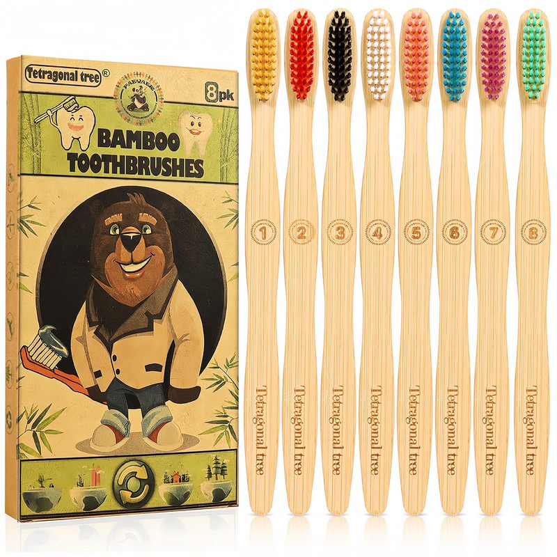 Tetragonal tree 8 Count Biodegradable Bamboo Toothbrushes - Natural Toothbrush Value Pack - Extra Soft Toothbrush for Adults, Good for Sensitive Teeth and Gums