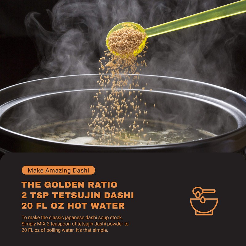 - ✅ AUTHENTIC JAPANESE DASHI STOCK is now easier than ever. Simply mix our Tetsujin Dashi No Moto in hot water, and it's ready to add Umami flavor to your favorite dish.