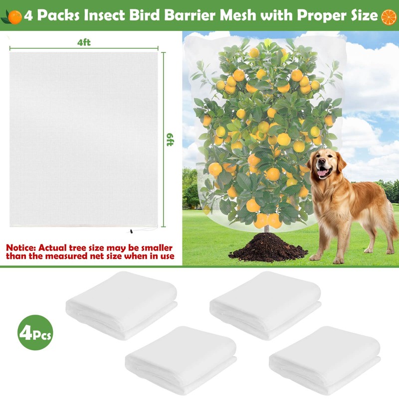 Tetutor 4 Pack Bird Netting for Garden Protection,4Ft x 6Ft Blueberry Bush Netting Cover, Garden Netting Insect Pest Barrier with Drawstring, Plant Netting Net for Fruits Trees Vegetables Cicadas