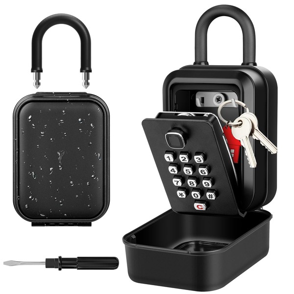TEUEN Portable Key Lock Box, Waterproof Sturdy Lock Box for Keys with Code, H...