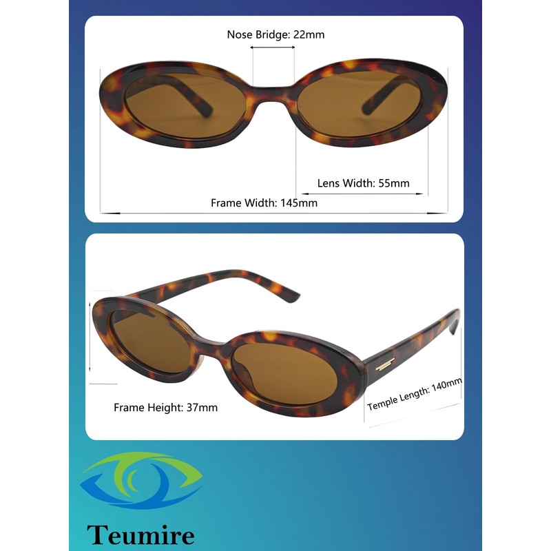 Teumire Retro Oval Sunglasses for Women Men Tiny Narrow 90s Style Small Sun Glasses 2 Pack(Leopard+Brown)