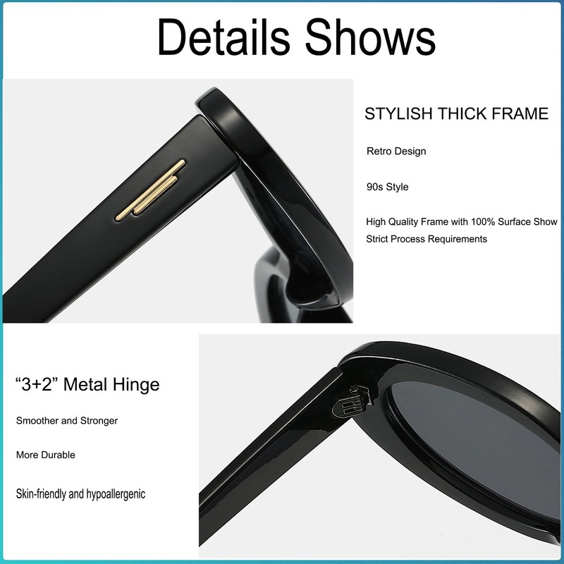 - 90S SUNGLASSES DESIGN - The 90s retro style sunglasses feature a cute and lightweight small oval shape with metal decoration on the temples perfect for women and teens with small faces.