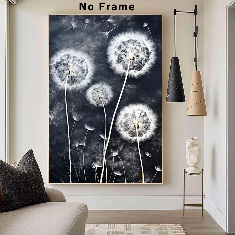 Tevenuktla Dandelion Flowers Wall Art Rustic Floral Pictures for Living Room Dark Floral Canvas Prints Dandelion Farmhouse Wall Art Black and White Dandelion Pictures 16x24inch No Frame