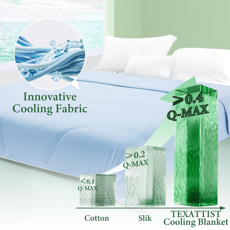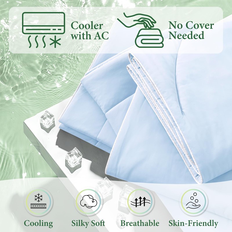 TEXARTIST Cooling Comforters King Size, Cooling Blanket for Hot Sleepers, Summer Cold Lightweight Breathable Soft Comforter to Stay Ice Cool for Night Sweats, Machine Washable, Blue (106"x90")