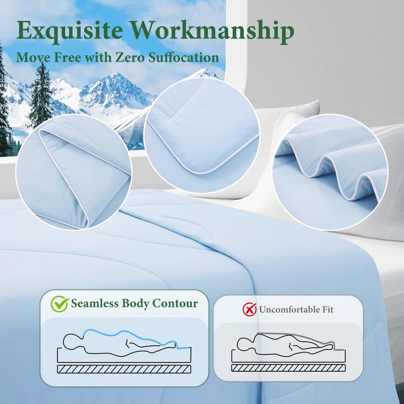 - Exceptional Breathability:Crafted from premium, lightweight fabric, the cooling comforter allows air to circulate freely. This distinctive design stops heat from getting trapped, preventing those bothersome night sweats. Whether you're a habitual hot sleeper or simply seeking relief from the summer swelter, the comforter's breathability will keep you feeling fresh and cool throughout the night.
