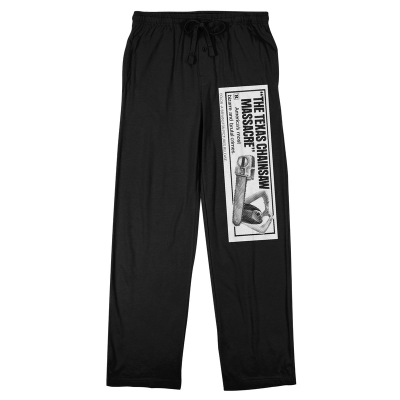 - CUSTOM DESIGN: These Texas Chainsaw Massacre sleep pajama pants feature a custom ad design from the film, highlighting a menacing chainsaw beside bold black letters reading, "The Texas Chainsaw Massacre. America's most bizarre and brutal crimes."