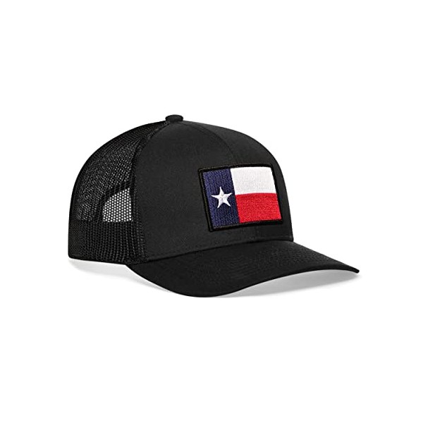 - TEXAS FLAG PATCH HAT DESIGN: Texas flag embroidered patch is sewn onto hat for maximum durability, not heat sealed. With an adjustable mesh snapback, one size fits most adults. This unisex hat is imported as blank but finished in the USA with strong a focus on quality.
