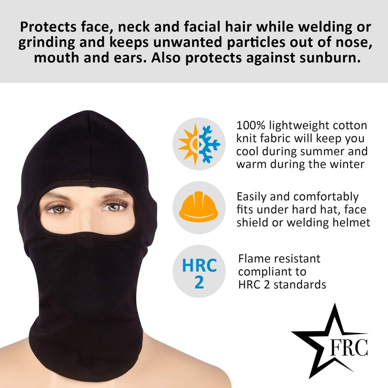 Texas FRC - Fire Resistant Balaclava Protective FRC Face Masks - HRC 2-100% Cotton Lightweight