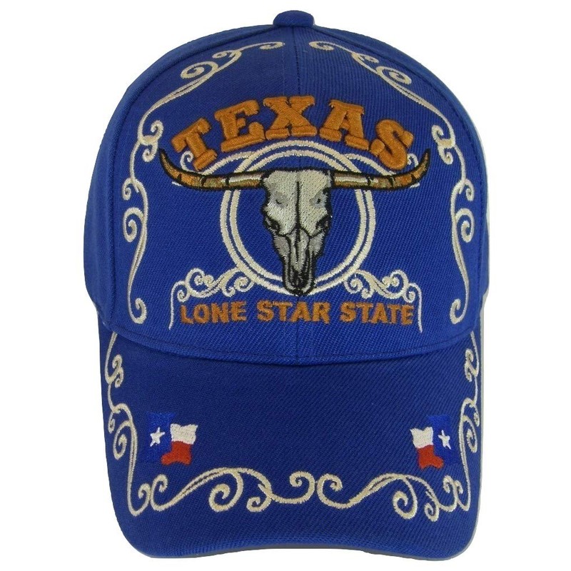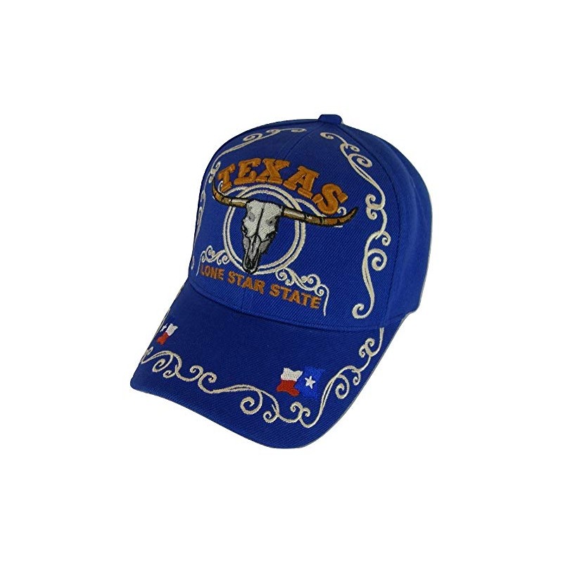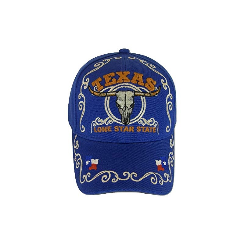 Texas Lone Star State Adjustable Baseball Cap with Flag and Longhorn (Royal)