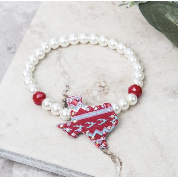 Texas Map with Crystals Bracelet Stretchable - Texas Map Aztec with Crystals