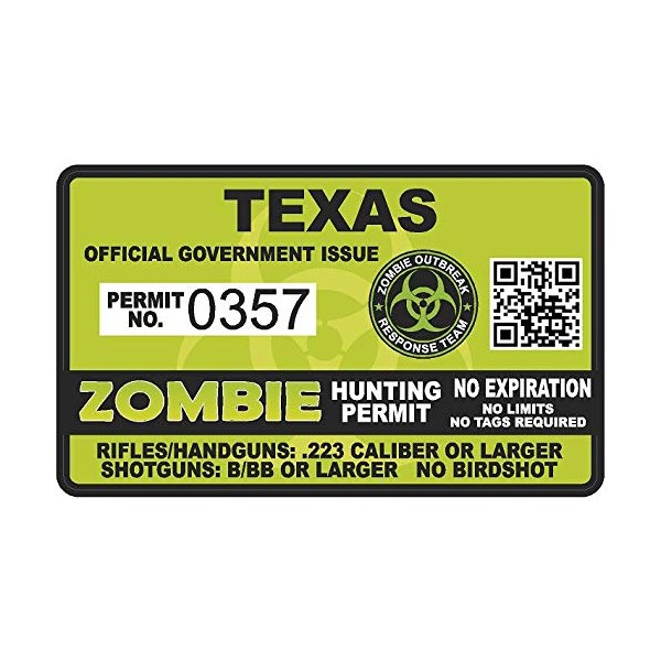 - Texas TX Zombie Hunting Permit - Hunter response biohazard team Unit 4" Outbreak Sticker