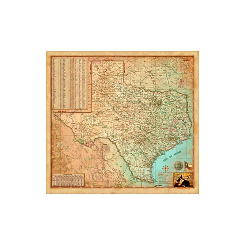 Texas Wall Map - Decorators Antique Finish - Laminated - 39"x36"