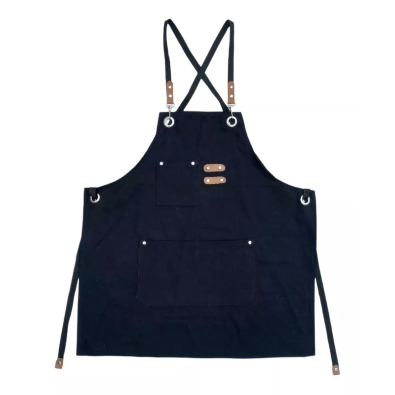 Mandil delantal multiusos barbero, chef, edtlista de loneta con bandolas ajustable y aplicaciones de cuero vinil con remaches
