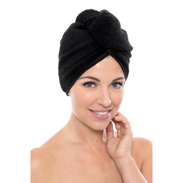 Texere Women's Bamboo Viscose Hair Towel (Tya, Black, U) Quick Drying Towel