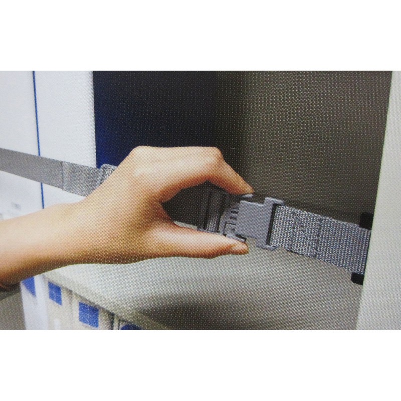 - Material: Metal fittings: Steel (surface treatment/cationation), Belt: Polypropylene, Adhesive: VHB (acrylic adhesive)