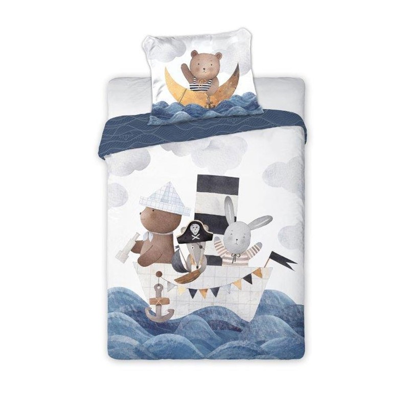texpot Children's Bed Linen Set 100 x 135 + 40 x 60 cm Ship Print Motif 100% Cotton Zip Easy Care