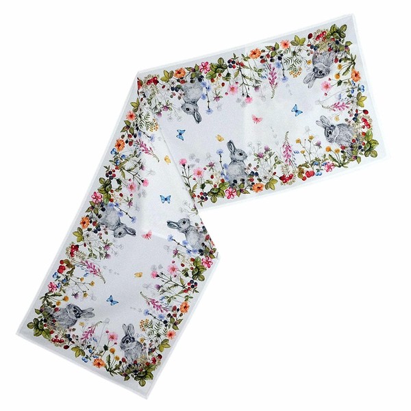 texpot Table Runner 40 x 140 cm with Bunny Print Summer Meadow Easter Spring