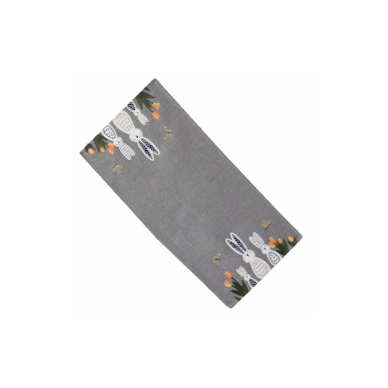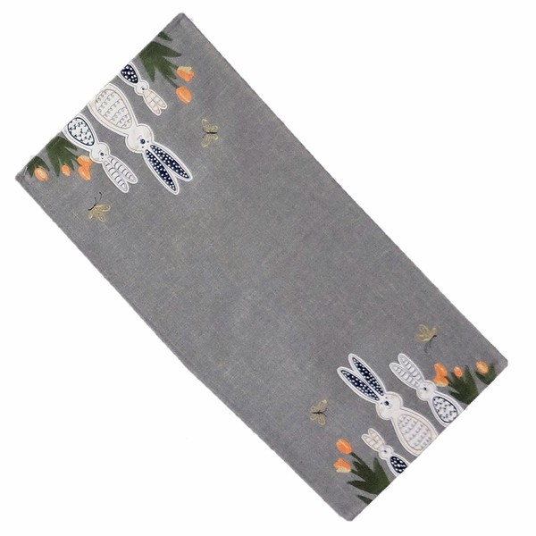 texpot Table Runner 40 x 85 cm with Embroidery Easter Bunny Grey Flowers Easter Spring