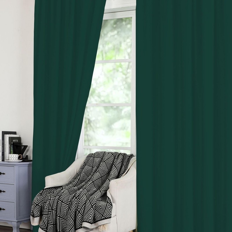 texpot Velvet Curtain Petrol 140 x 245 cm Opaque with Ruffle Tape Sliding Curtain