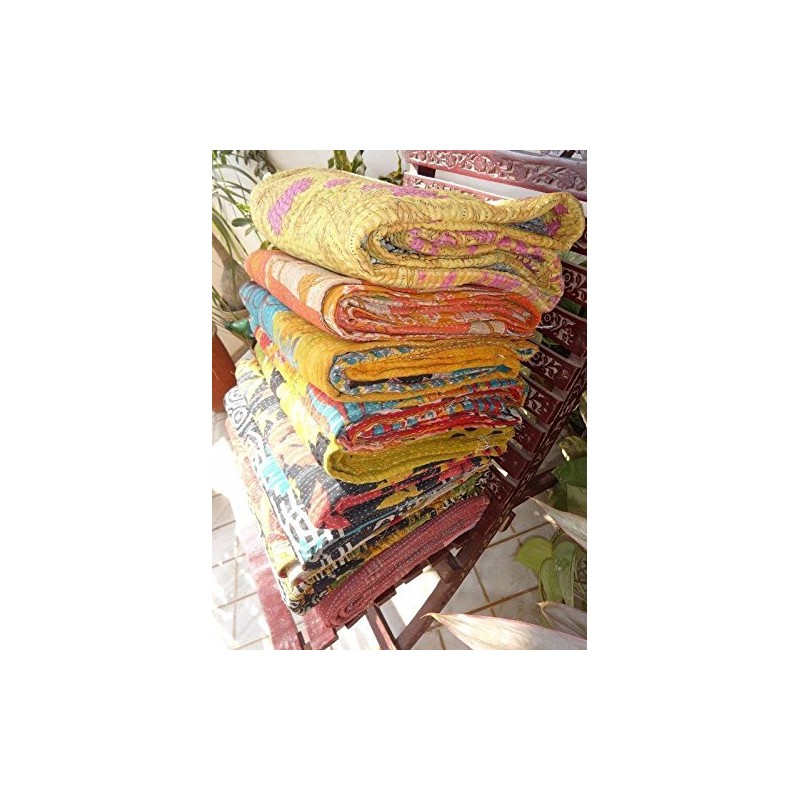 TEXTILLHUB Indian Wholesale Indian Tribal Kantha Quilt Vintage Handmade Blanket Patch Kantha Throw Hippie Bohemian Old Saree Made Kantha Rally Twin (Multi)