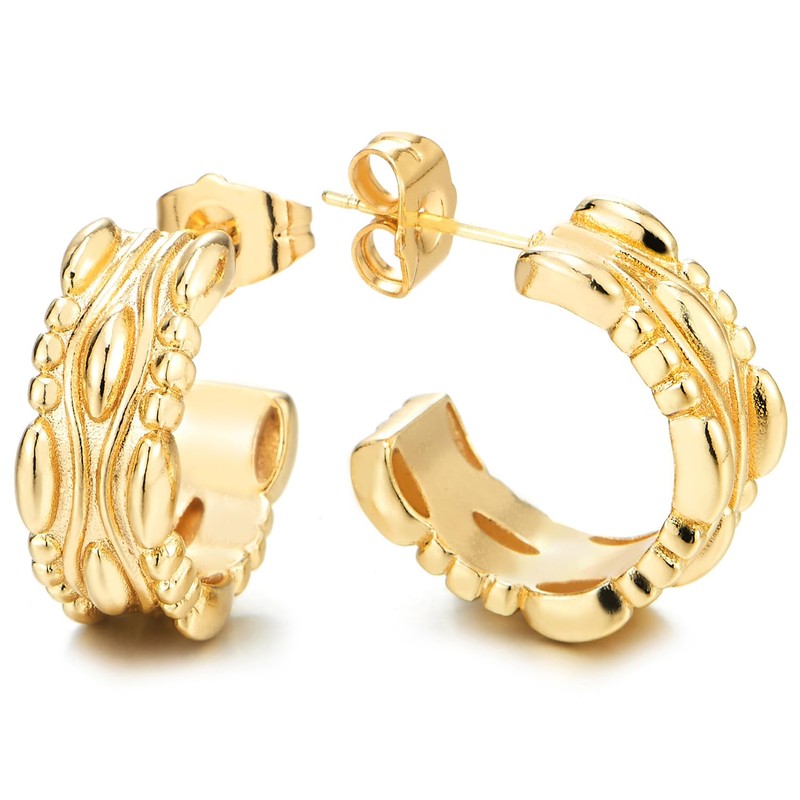 - Textured Bow Hope Earrings, Gold Tone Half Circle Dangle Drop Stud Earrings, Statement Jewelry