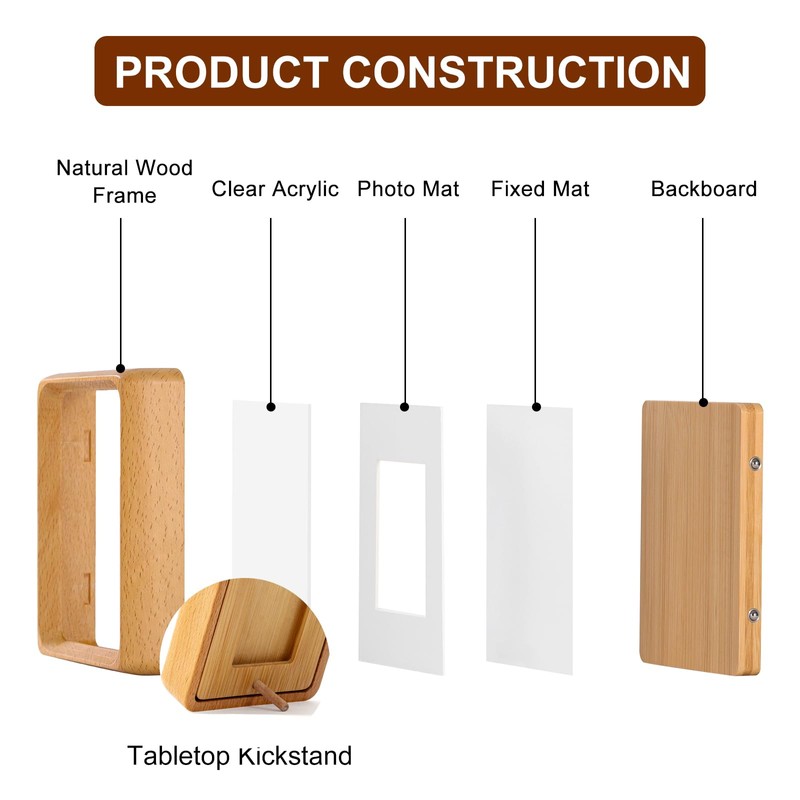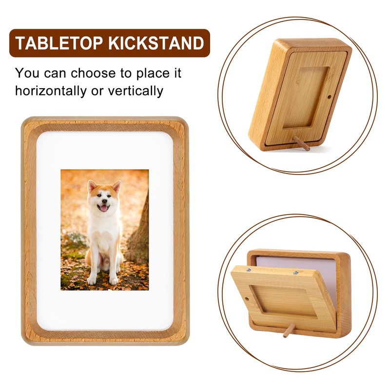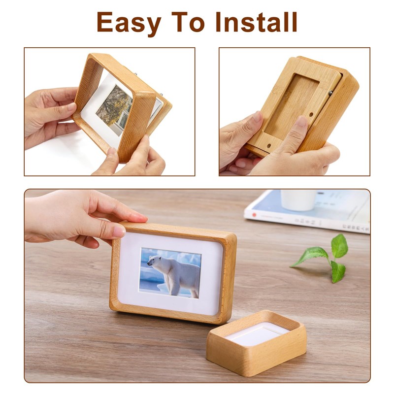 - EASY TO USE: Natural wood mini photo frame comes with all the necessary hardware for easy assembly. The back panel edge is equipped with a ball spring button, which can be easily opened with a gentle push. - It's that simple!