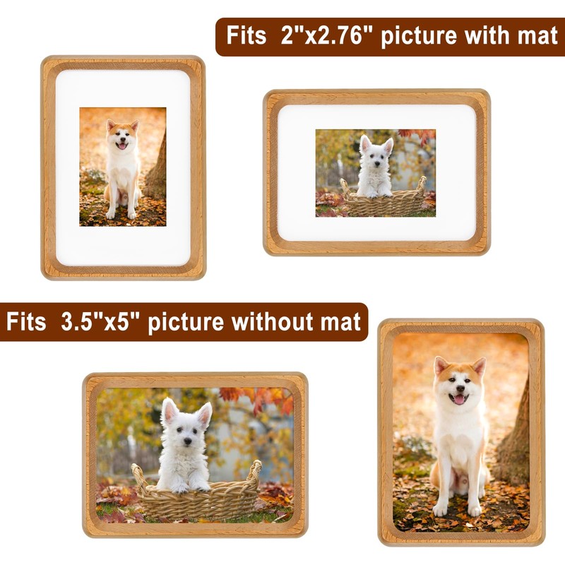 - VERSATILE DISPLAY & SIZE: 3.5x5 inch wooden small photo frame offers a seamless adaptation for both vertical and horizontal tabletop display. Whether you prefer classic portraits or charming landscapes, our frame perfectly fits pictures of 2" x 2.76" (5x7cm) with mat or 3.5" x 5" (8.8x12.7cm) without mat, providing versatile options for showcasing your cherished memories.