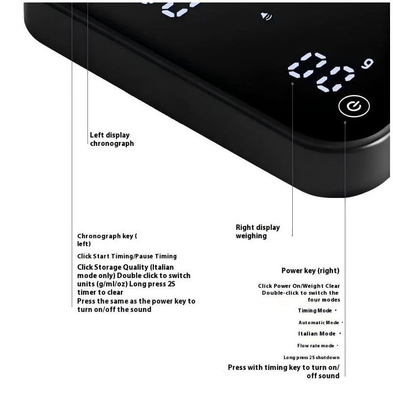 - Versatile Units & Timing Modes:Switch effortlessly between grams, ounces, and milliliters while utilizing automatic or manual timing modes to guarantee optimal brew times