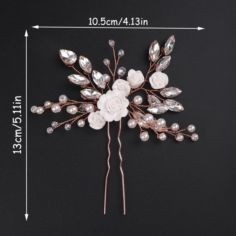 Teyglen Bridal Flower Hair Pins Rose Gold Pearl Crystal Hair Piece Clips Floral Flower Rhinestone Wedding Hair Pins Hair Accessories for Women Headpiece
