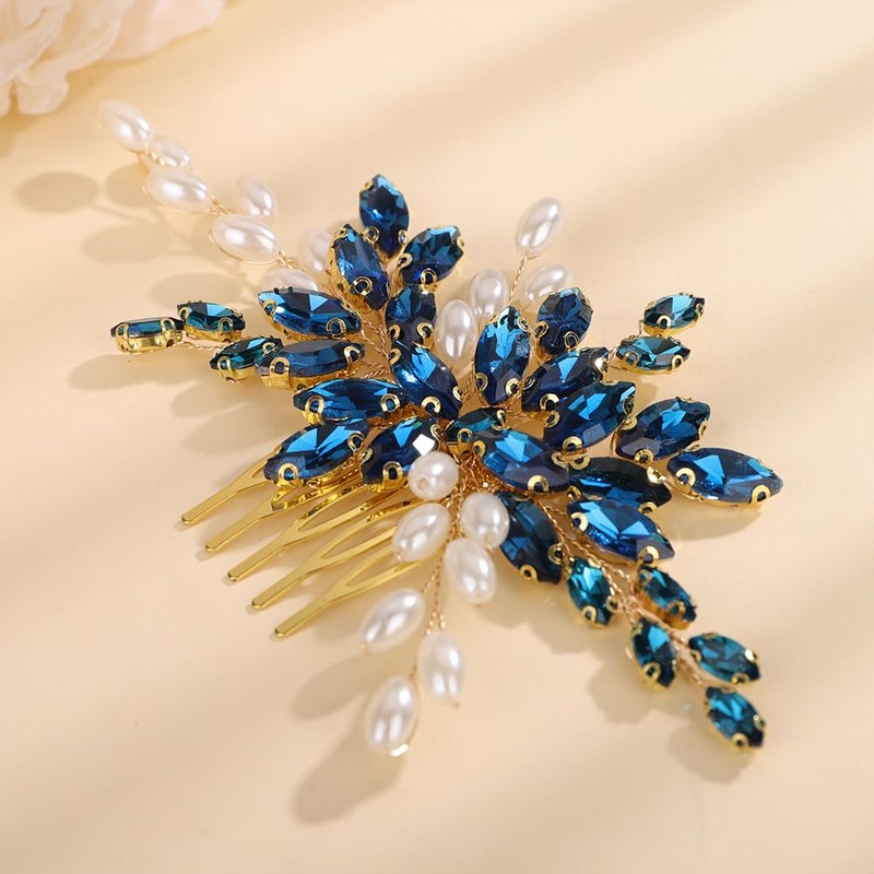 - Delicate blue crystal pearl hair comb for women party prom wedding and evening,exquisite and unique design,will add more charm for your outfit.
