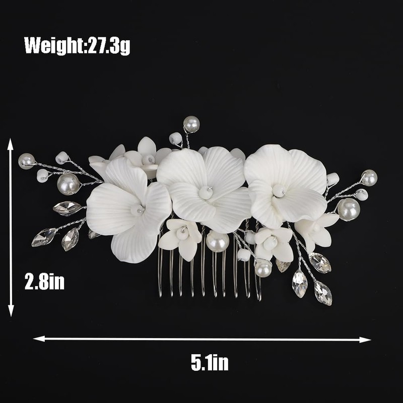 - Floral white flower crystal pearl hair comb headband for women party prom wedding and evening,exquisite and unique design,will add more charm for your outfit.
