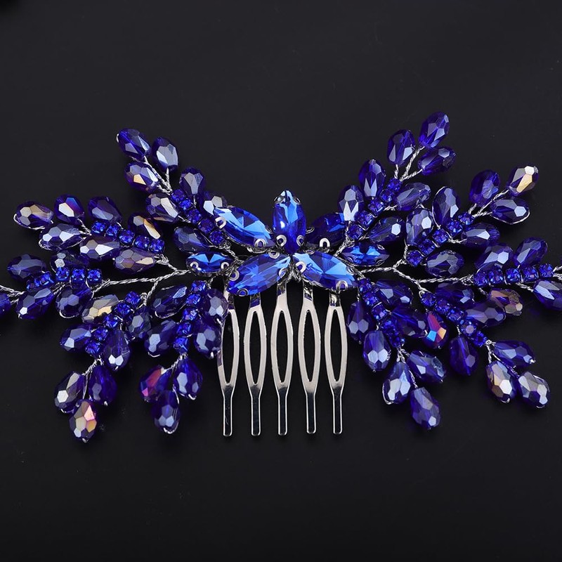 - Sparkly blue rhinestone crystal hair comb for women party prom wedding and evening,exquisite and unique design,will add more charm for your outfit.