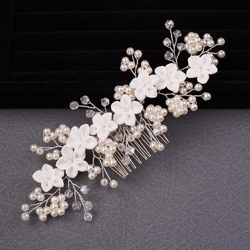 Teyglen Mujeres Dainty Flower Pearl Rhinestone Nupcial Boda Peine Para El Cabello Diadema Cristales Hechos A Mano Piezas Para El Cabello Tocados Accesorios Para El Cabello Para Mujeres Novia Niñas
