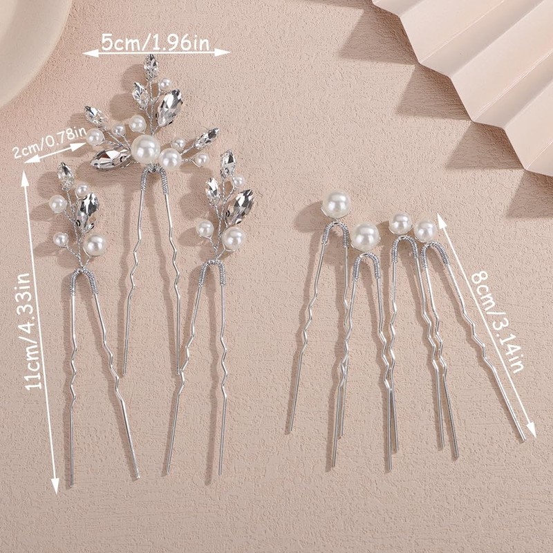 - Elegant silver rhinestone pearl wedding hair pins set,exquisite and unique design,will add more charm for your outfit.