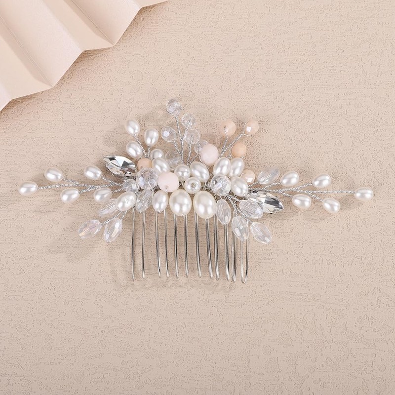 - Simple and sparkly silver rhinestone pearl crystal beads hair comb for women party prom wedding and evening,exquisite and unique design,will add more charm for your outfit.