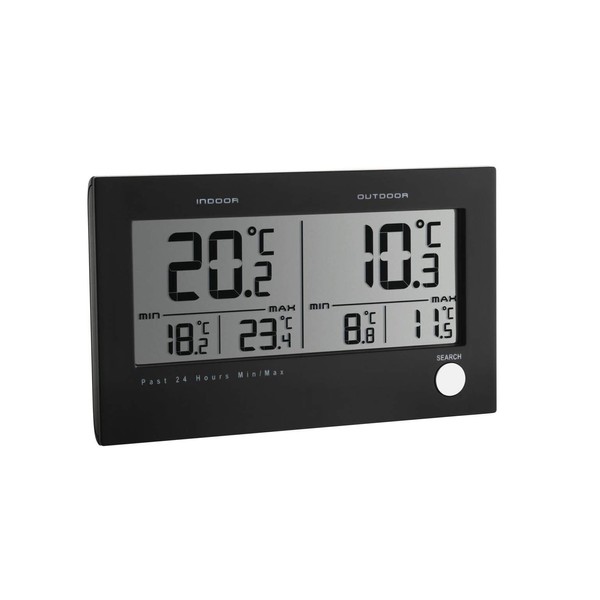30.3048 Features: -Case material: Plastic. -Black colour. -Frost indicator. -Wireless transmission of outdoor temperature via transmitter up to 3.000 cm away. -Instrument will display the maximum and minimum temperatures of last 24 hours. -Used indoor and outdoor. Dimensions: Overall Height - Top to Bottom: -8.3 Centimetres. Overall Width - Side to Side: -13.7 Centimetres. Overall Depth - Front to Back: -1.7 Centimetres. Overall Product Weight: -0.1 Kilogram.