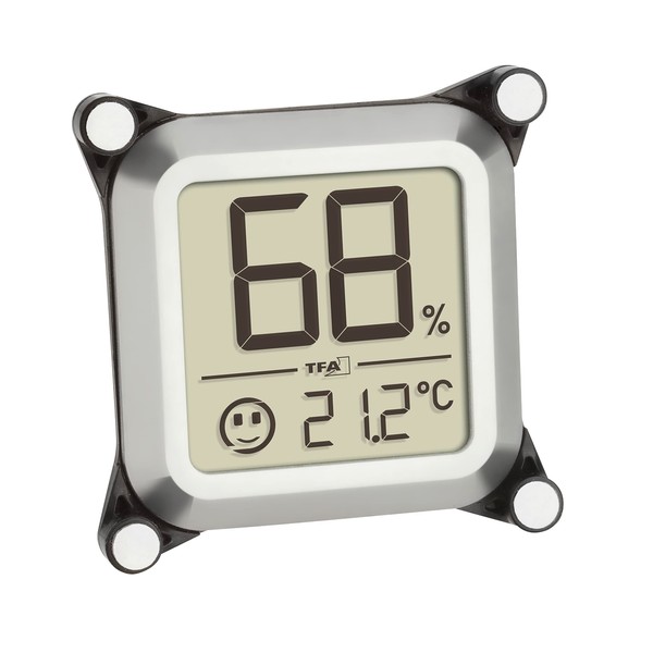 TFA Dostmann 30.5056.54 Digital Cigar Hygrometer for Humidor/Cigar Cabinet Humidity Measurement with Smiley Indicator Silver