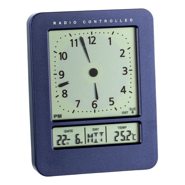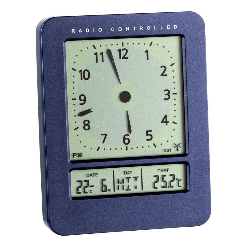DCF-77 radio clock, controlled via signal from Frankfurt (reaches 1500 km).