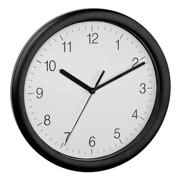 TFA Dostmann Analog Wall 60.3064.01 Modern Silent Sweep Movement Kitchen Office Clock Black Frame, (L) 254 x (B) 254 x (H) 34 mm