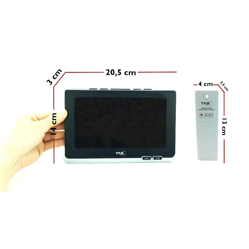 - Radio-controlled clock: digital weather station, including radio-controlled clock, alarm clock with snooze function and date display, colour display with two brightness levels can be seen at any time of day and night