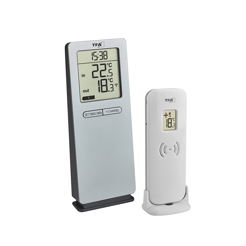 TFA Dostmann LOGOneo Wireless Thermometer, 30.3071.54, Room Temperature and Outdoor Temperature, Digital, Silver