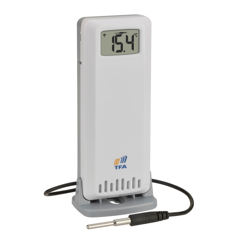- Box contents: 1x TFA-ID temperature transmitter with cable sensor and instruction manual (English language not guaranteed), the required batteries (2 x 1.5 V AA) must be ordered separately