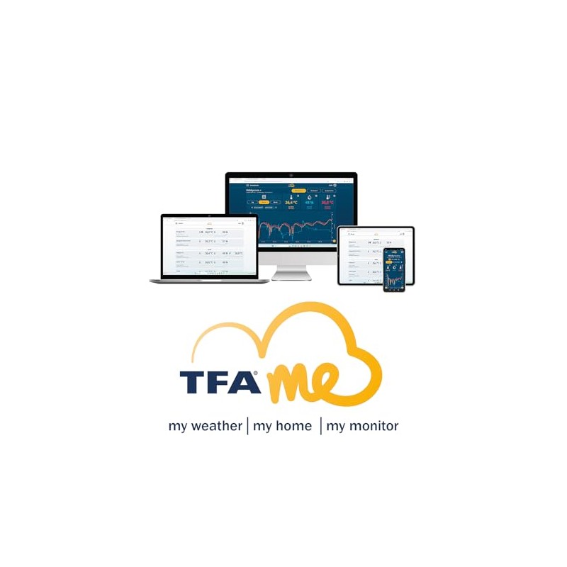 - TFA.me: free TFA.me online web portal allows worldwide retrieval of the measured values on PC, tablet or smartphone; all measured values of the transmitters (up to 50 available online) are clearly displayed in the portal using graphics