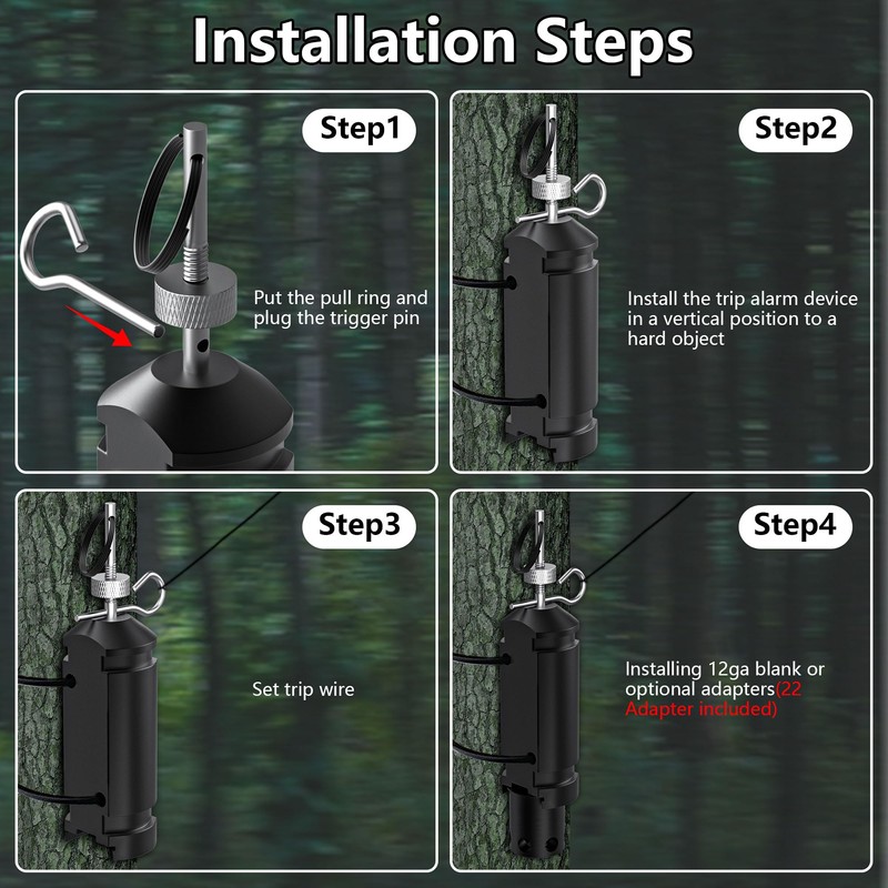 - * 【Wide Compatibility】Designed for perimeter defense, the trip wire alarm works with 12 gauge units, 209 primers adapters and 308 adapters. Easy to install and use, the trip alarms perimeter 12 gauge prevents dangerous animals from entering your campsite and burglars from entering your home.