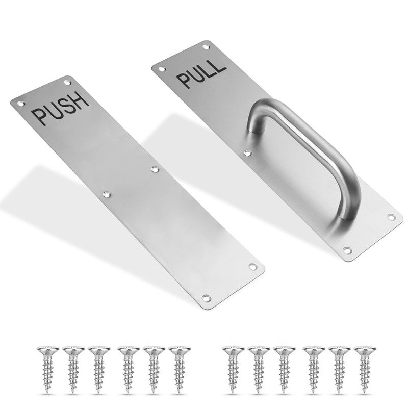 - Wide Application: This silver pull and push plate with with metal plate is perfect for internal and external doors such as restaurant gate, glass and closet door, bar, kitchen, toilet and more home and business places.