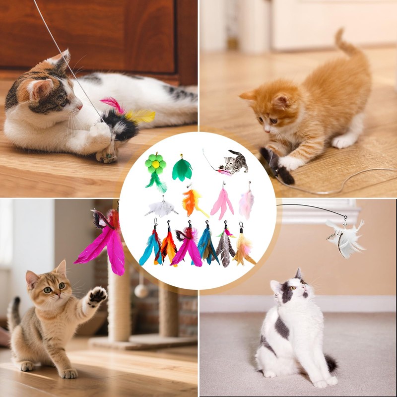 - Packaged You will receive 12 pieces feather toys for cats, these feather toys are about 15 cm/ 5.9 inches, this cat feather toy is equipped with bells, which can make sounds and easily attract your cat's attention and stimulate their instinct, and can exercise for hours.