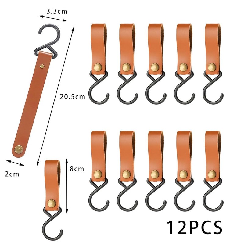 - Value package: you will receive 12 pieces leather straps with hooks. Sufficient quantity to meet your needs at home or outdoors, such as camping, climbing, hiking, travel, kitchen, bedroom, etc.