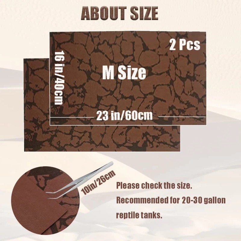 Size M: 15.7 "x23.6" / 40x60cm Recommended for 20-30 gallon terrarium